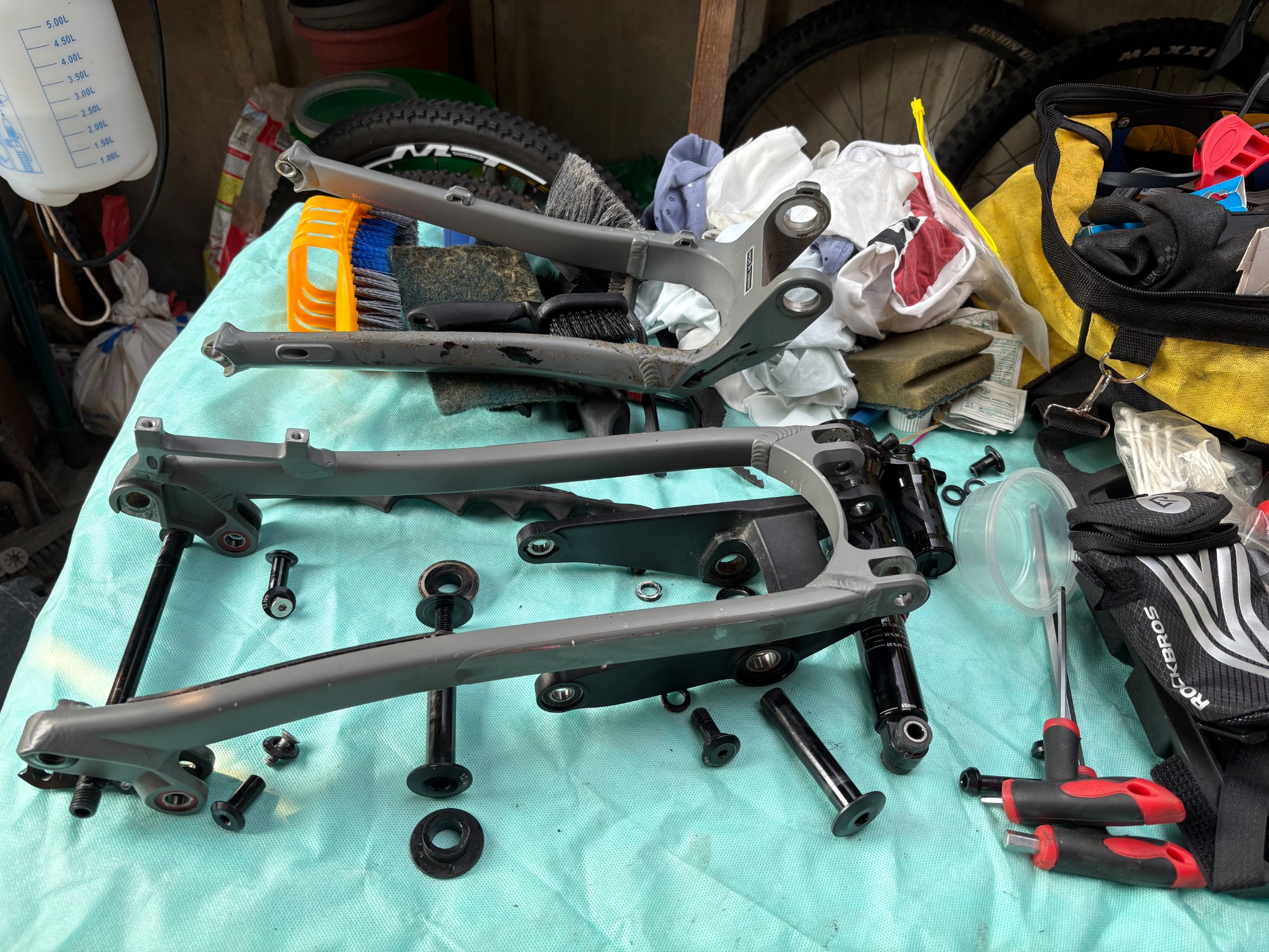 Platinum service. This bike was fully stripped down and rebuilt. On this occassion all the customer wanted replacing was the basics, so all that was needed was new gear cables, brake pads and an inner tube